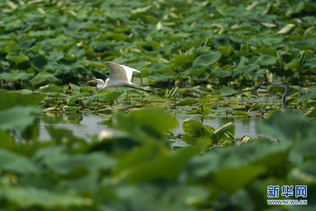 今年,河北省新河縣新河鎮(zhèn)白穴口村村集體和種植大戶(hù)合作種植蓮藕1000多畝。時(shí)值夏日,這里的藕田吸引了大量鷺鳥(niǎo)前來(lái)覓食、嬉戲,美麗的鷺鳥(niǎo)成為鄉(xiāng)間一道靚麗的風(fēng)景。