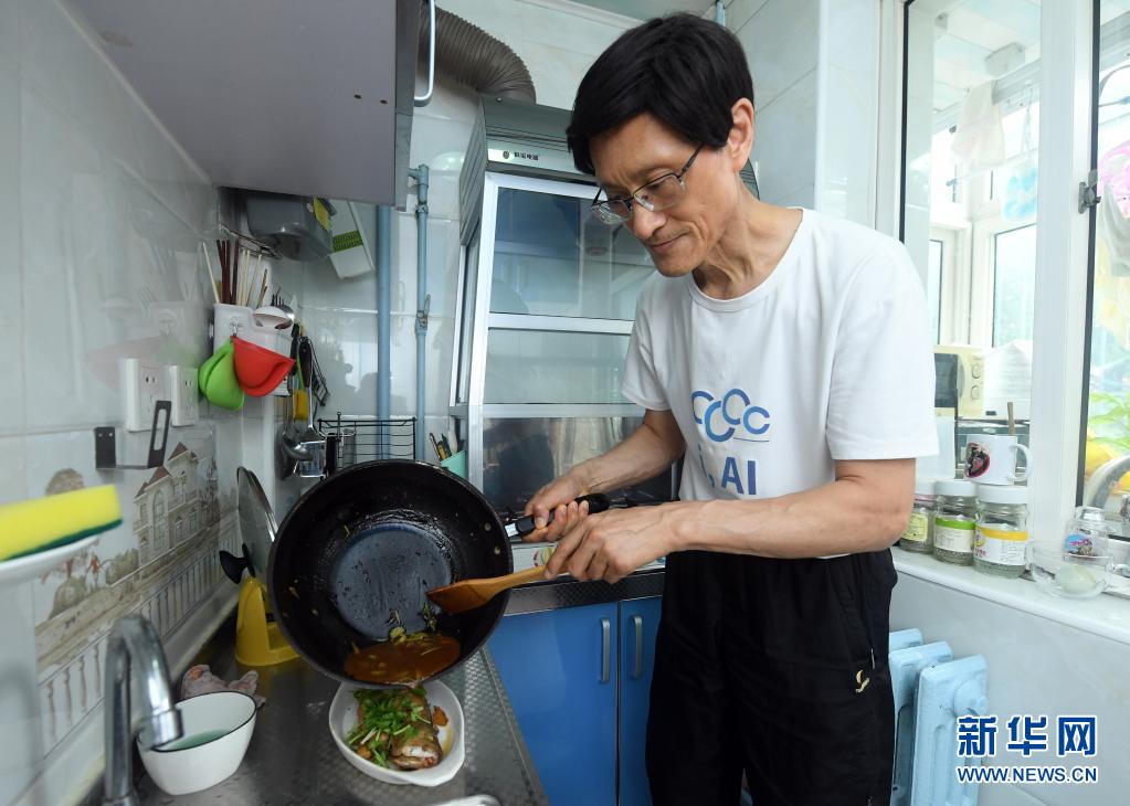 8月14日,馮向東在家中為妻子董星梅做午餐。
