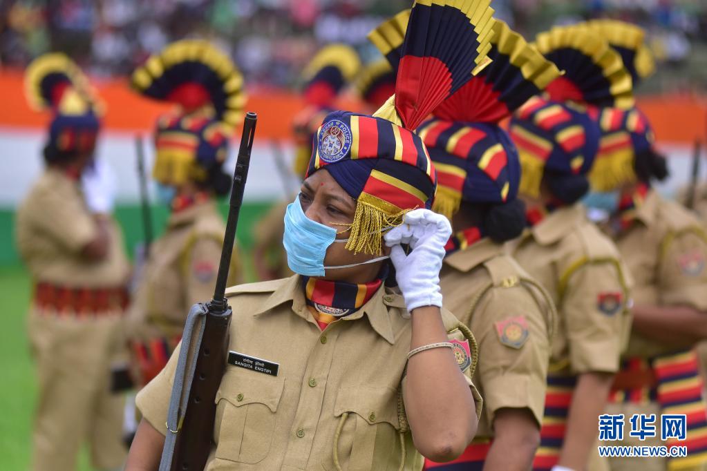 8月15日,警察在印度阿薩姆邦參加獨(dú)立日慶?;顒?dòng)。