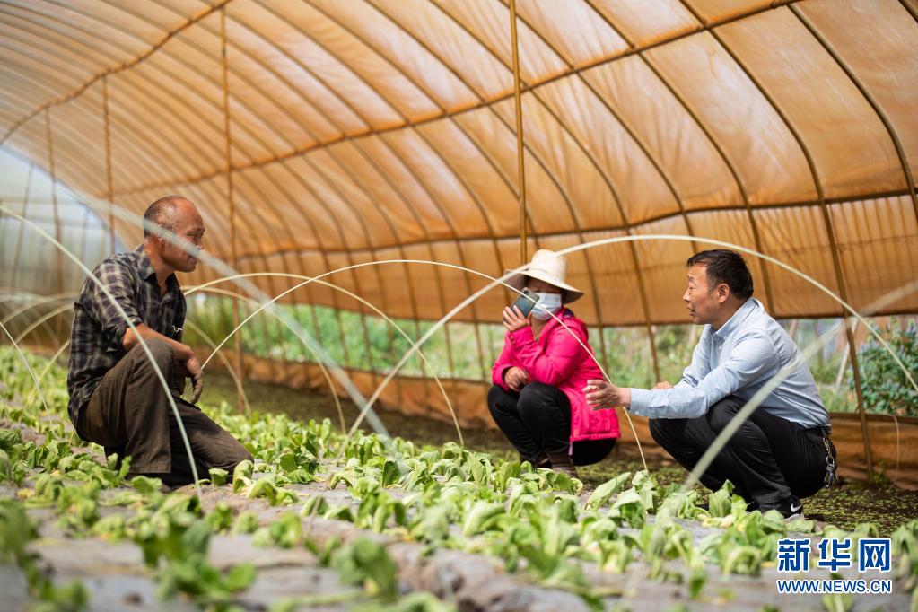 8月13日,在四川省阿壩藏族羌族自治州紅原縣邛溪鎮(zhèn)熱坤村的蔬菜大棚,農(nóng)業(yè)技術(shù)推廣研究員茍?。ㄓ遥┰诮o蔬菜種植大戶答疑解惑。