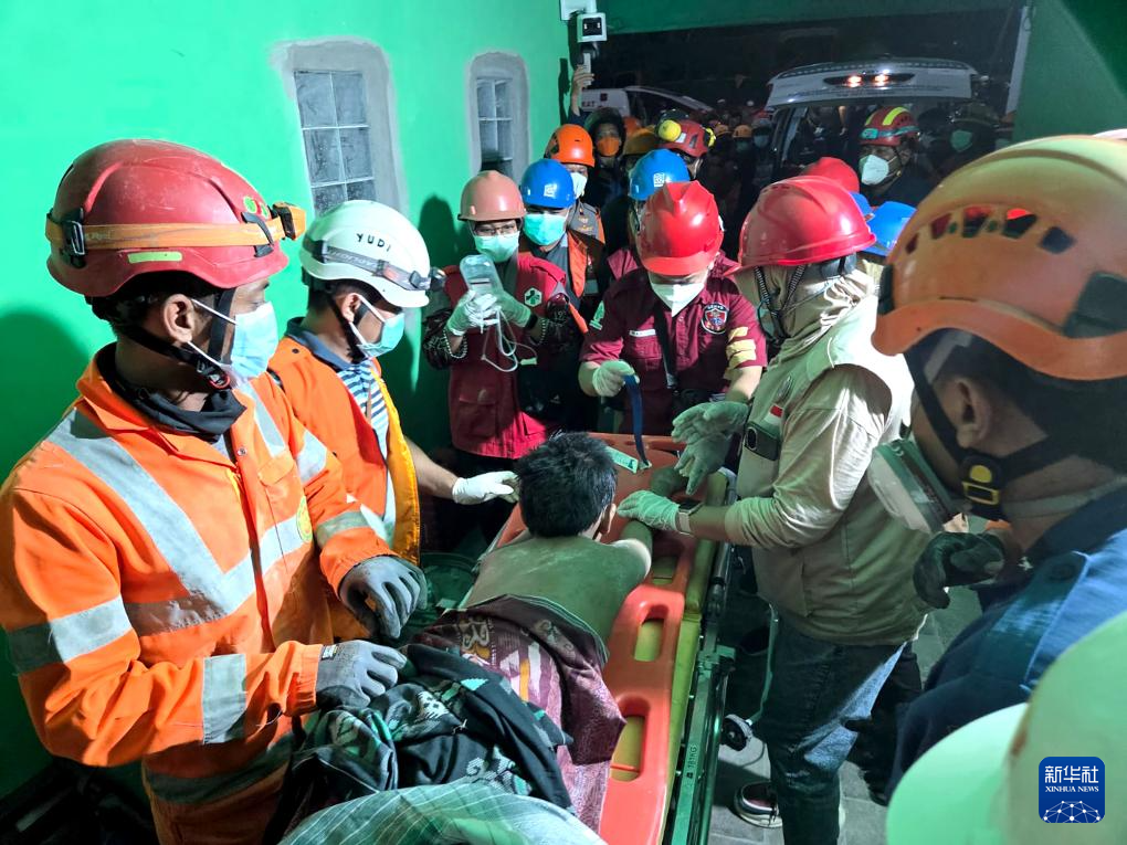 10月1日,救援人员在印度尼西亚东爪哇省诗都阿佐县建筑倒塌现场救出一名幸存者。