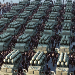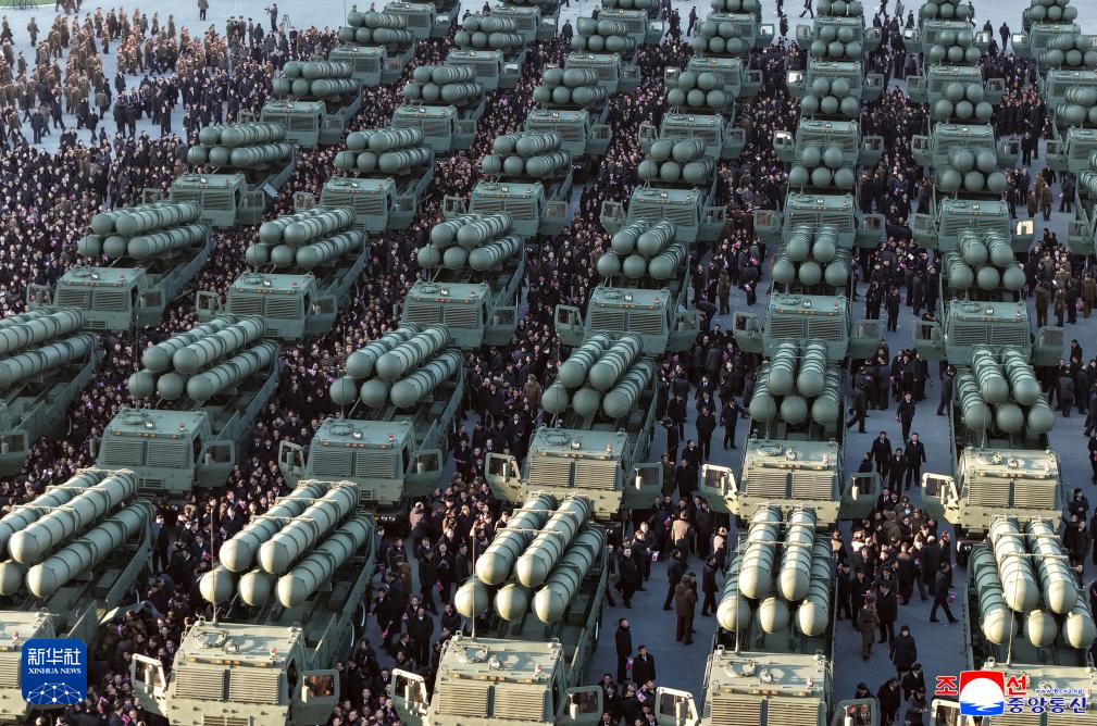 2月18日,金正恩在朝鲜平壤检阅火箭炮车。