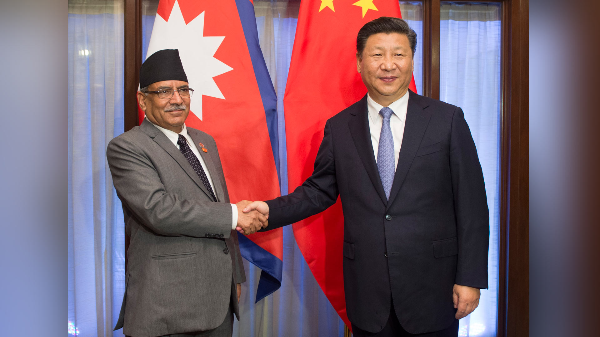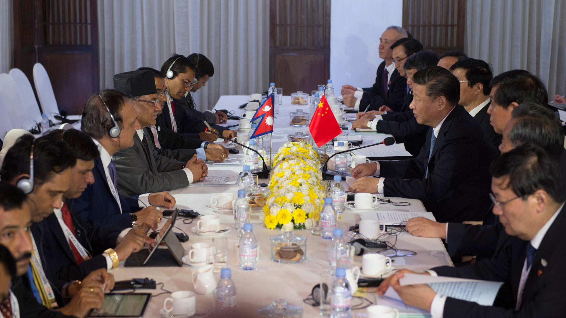 10月15日,國家主席習(xí)近平在印度果阿會見尼泊爾總理普拉昌達。新華社記者 謝環(huán)馳 攝