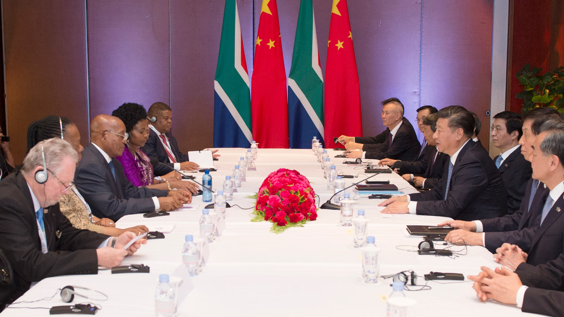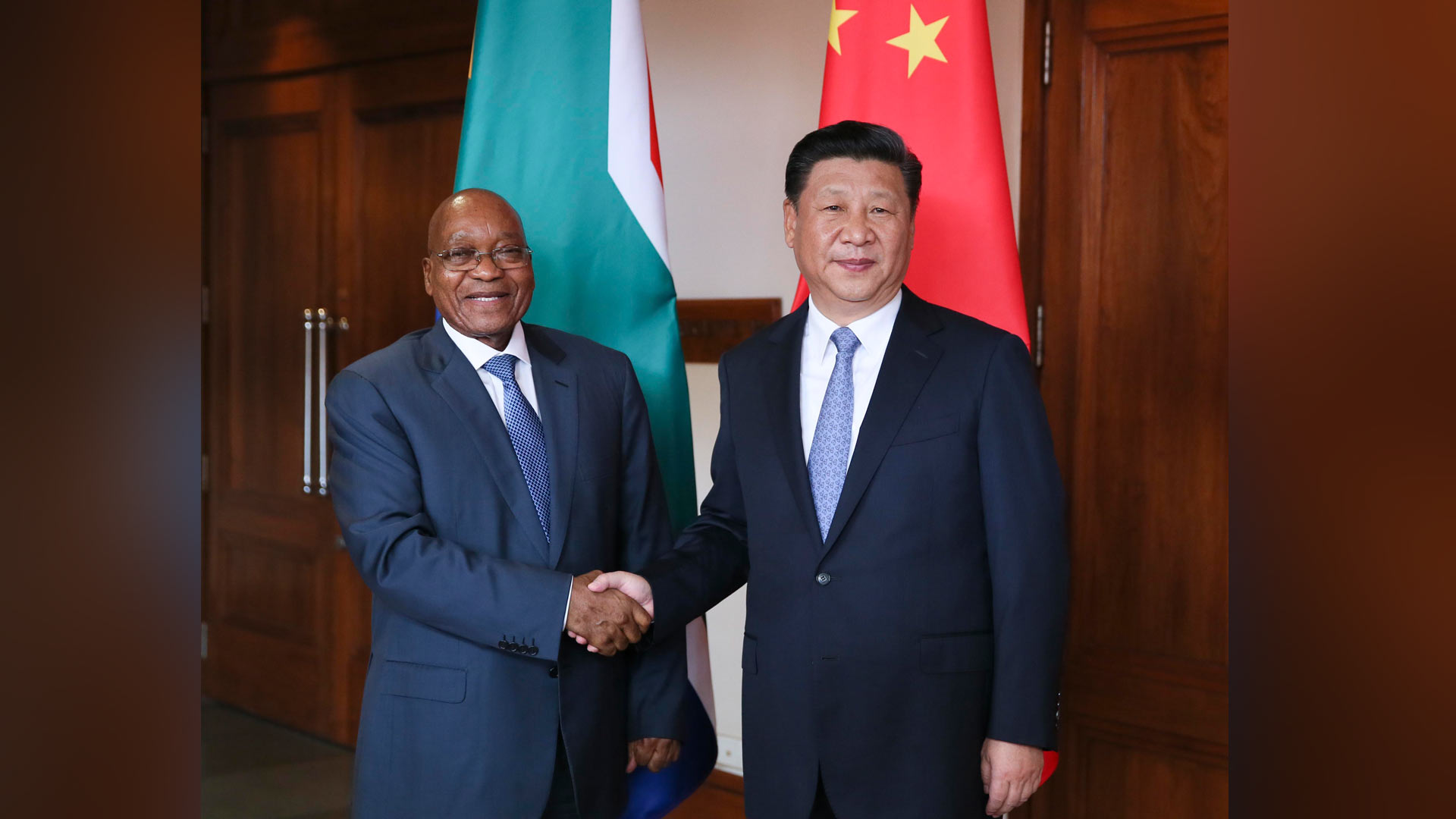 10月15日,國家主席習(xí)近平在印度果阿會見南非總統(tǒng)祖馬。新華社記者 蘭紅光 攝