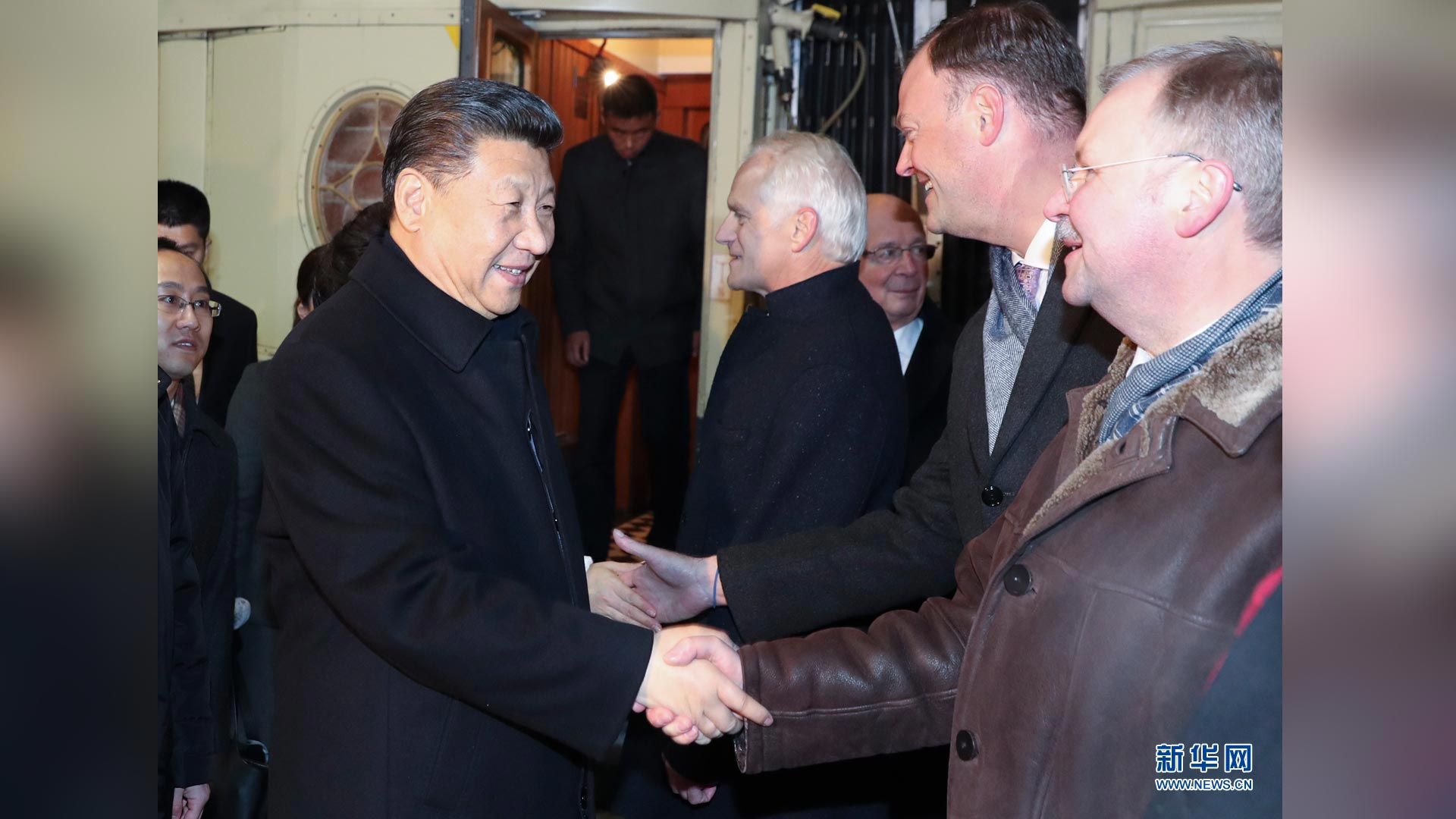 1月15日,國(guó)家主席習(xí)近平在瑞士聯(lián)邦主席洛伊特哈德陪同下,乘坐瑞士政府專列自蘇黎世前往瑞士首都伯爾尼。在專列行進(jìn)過(guò)程中,習(xí)近平和夫人彭麗媛受洛伊特哈德主席夫婦邀請(qǐng),在輕松愉快的氛圍中品茶暢談。這是習(xí)近平在伯爾尼克爾薩茨火車站觀看瑞士童聲合唱團(tuán)表演后,與合唱團(tuán)的小演員交流。 新華社記者饒愛(ài)民攝2017-01-16