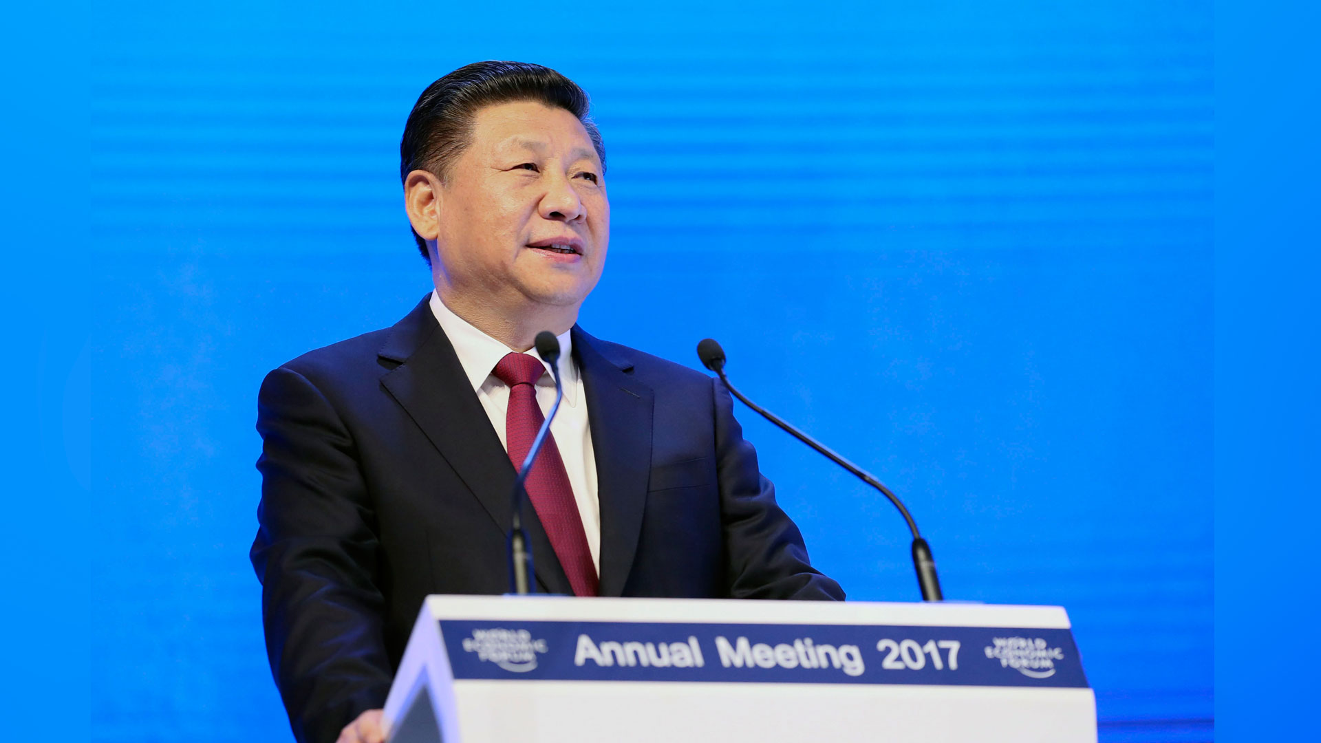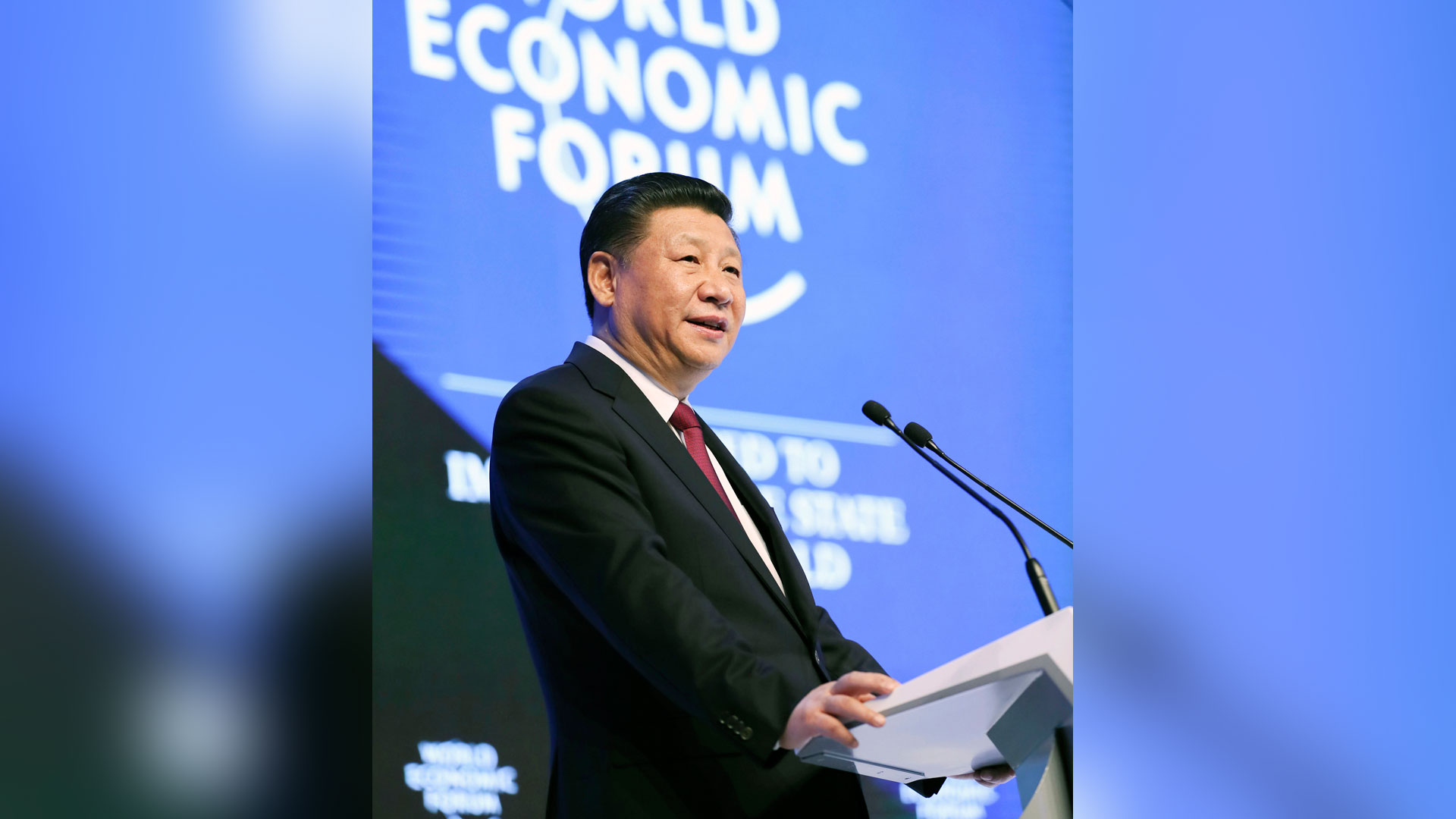 1月17日,國(guó)家主席習(xí)近平在瑞士達(dá)沃斯國(guó)際會(huì)議中心出席世界經(jīng)濟(jì)論壇2017年年會(huì)開(kāi)幕式,并發(fā)表題為《共擔(dān)時(shí)代責(zé)任共促全球發(fā)展》的主旨演講。 新華社記者 蘭紅光 攝2017-01-18
