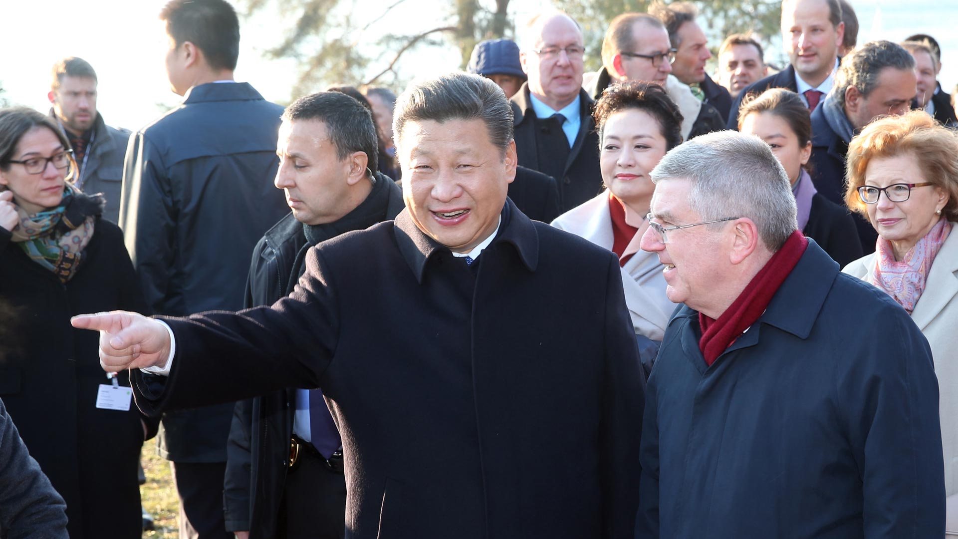 1月18日,國(guó)家主席習(xí)近平在瑞士洛桑國(guó)際奧林匹克博物館會(huì)見(jiàn)國(guó)際奧林匹克委員會(huì)主席巴赫。這是會(huì)見(jiàn)后,習(xí)近平在巴赫陪同下參觀國(guó)際奧林匹克博物館。新華社記者 姚大偉 攝2017-01-19