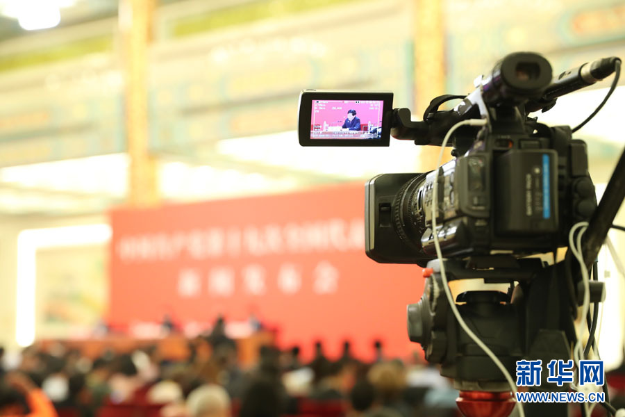2017年10月17日下午,中國共產(chǎn)黨第十九次全國代表大會新聞發(fā)言人在人民大會堂三樓金色大廳舉行新聞發(fā)布會,并回答中外記者的提問。圖為新聞發(fā)布會正在進(jìn)行。新華網(wǎng) 翟子赫 攝