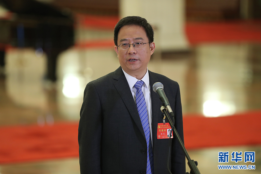 10月19日,“黨代表通道”第二場采訪活動在人民大會堂舉行。圖為黃一兵代表接受采訪。新華網(wǎng) 翟子赫 攝