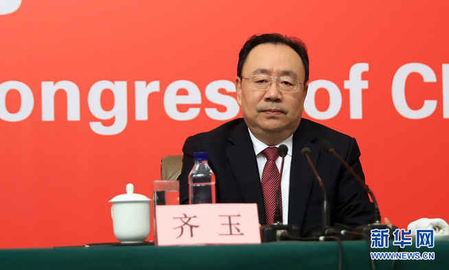 ??? 10月19日,十九大新聞中心舉行記者會(huì),邀請(qǐng)中紀(jì)委、中組部負(fù)責(zé)人介紹黨的建設(shè)和全面從嚴(yán)治黨相關(guān)情況。圖為中共中央組織部副部長(zhǎng)齊玉介紹相關(guān)情況。新華網(wǎng) 郝廣鵬攝