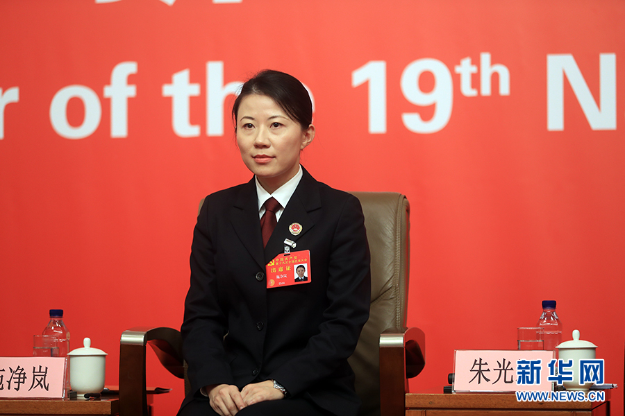 ??? 10月19日,十九大新聞中心舉辦集體采訪,邀請(qǐng)政法戰(zhàn)線代表談全面推進(jìn)依法治國(guó)。圖為上海市浦東新區(qū)人民檢察院公訴二處命名檢察官施凈嵐。新華網(wǎng) 郝廣鵬攝