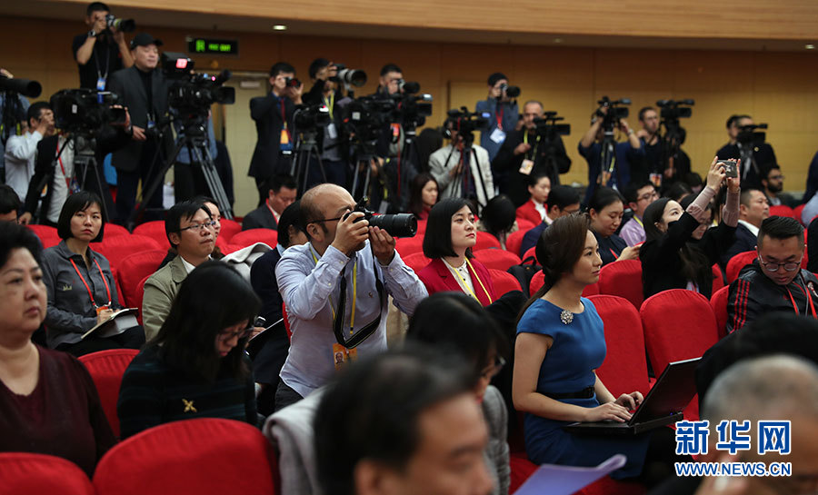 ??? 10月19日,十九大新聞中心舉辦集體采訪,邀請(qǐng)工信和通訊領(lǐng)域代表談走新型工業(yè)化道路。圖為采訪現(xiàn)場(chǎng)。新華網(wǎng) 郝廣鵬攝