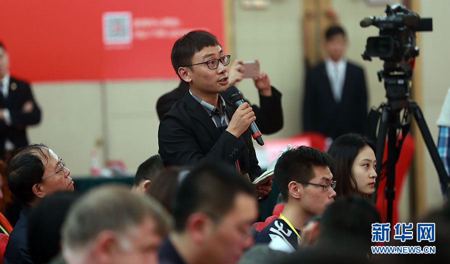 ??? 10月20日,十九大新聞中心舉辦集體采訪活動(dòng),主題為“文化發(fā)展開創(chuàng)新局面”。圖為光明日?qǐng)?bào)融媒體記者提問。新華網(wǎng) 翟子赫攝