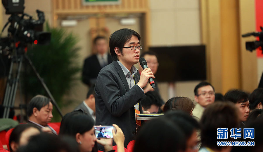 ??? 10月20日,十九大新聞中心舉辦集體采訪活動(dòng),主題為“文化發(fā)展開(kāi)創(chuàng)新局面”。圖為解放日?qǐng)?bào)記者提問(wèn)。新華網(wǎng) 陳杰攝