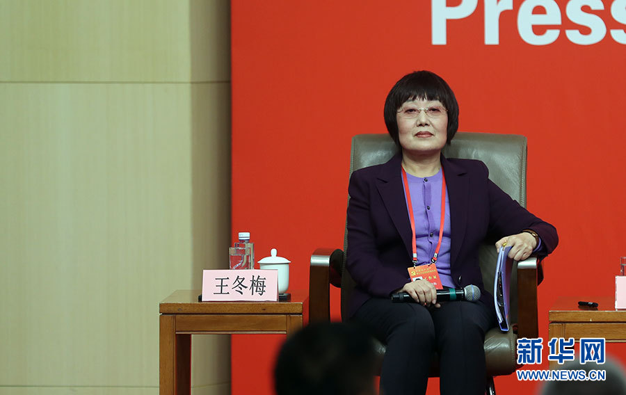 ??? 10月20日,十九大新聞中心舉辦集體采訪活動(dòng),主題為“實(shí)施創(chuàng)新驅(qū)動(dòng)發(fā)展戰(zhàn)略”。圖為主持人王冬梅。新華網(wǎng) 郝廣鵬攝