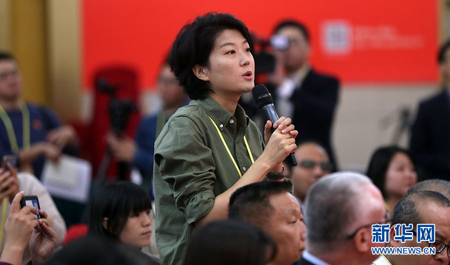 ??? 10月20日,十九大新聞中心舉辦集體采訪活動(dòng),主題為“實(shí)施創(chuàng)新驅(qū)動(dòng)發(fā)展戰(zhàn)略”。圖為中國(guó)國(guó)際廣播電臺(tái)記者提問。新華網(wǎng) 郝廣鵬攝
