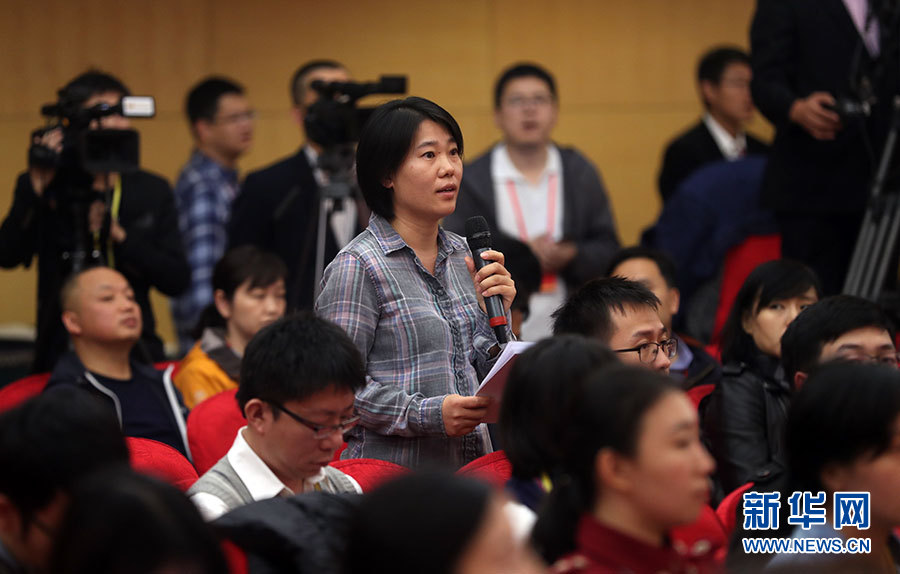??? 10月20日,十九大新聞中心舉辦集體采訪活動,主題為“實施創(chuàng)新驅(qū)動發(fā)展戰(zhàn)略”。圖為中國海洋報記者提問。新華網(wǎng) 郝廣鵬攝