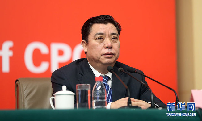 ??? 10月21日,十九大新聞中心舉辦記者招待會,邀請中共中央統(tǒng)戰(zhàn)部常務(wù)副部長張裔炯、副部長冉萬祥,中共中央對外聯(lián)絡(luò)部副部長郭業(yè)洲介紹黨的統(tǒng)一戰(zhàn)線工作和黨的對外交往情況,并回答記者提問。圖為中共中央統(tǒng)戰(zhàn)部副部長冉萬祥。新華網(wǎng) 郝廣鵬攝