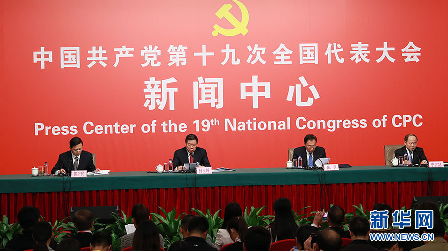 ??? 10月21日,十九大新聞中心舉辦記者招待會(huì),邀請(qǐng)國(guó)家發(fā)展改革委黨組書記、主任何立峰,副主任張勇,副主任寧吉喆介紹以新發(fā)展理念為引領(lǐng),推進(jìn)中國(guó)經(jīng)濟(jì)平穩(wěn)健康可持續(xù)發(fā)展有關(guān)情況,并回答記者提問(wèn)。圖為記者招待會(huì)現(xiàn)場(chǎng)。新華網(wǎng) 郝廣鵬攝