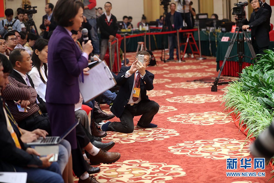 ??? 10月21日,十九大新聞中心舉辦記者招待會(huì),邀請(qǐng)國(guó)家發(fā)展改革委黨組書記、主任何立峰,副主任張勇,副主任寧吉喆介紹以新發(fā)展理念為引領(lǐng),推進(jìn)中國(guó)經(jīng)濟(jì)平穩(wěn)健康可持續(xù)發(fā)展有關(guān)情況,并回答記者提問(wèn)。圖為現(xiàn)場(chǎng)記者。新華網(wǎng) 郝廣鵬攝