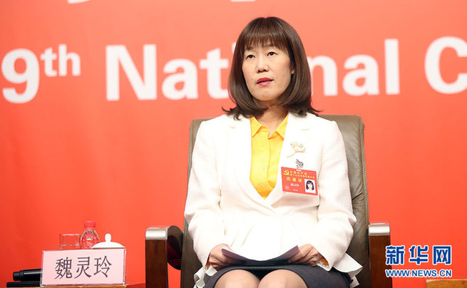 ??? 10月21日,十九大新聞中心舉辦集體采訪(fǎng)活動(dòng),主題為“農(nóng)業(yè)科技創(chuàng)新”。圖為中國(guó)農(nóng)業(yè)科學(xué)院農(nóng)業(yè)環(huán)境與可持續(xù)研究所研究員、農(nóng)業(yè)部休閑農(nóng)業(yè)重點(diǎn)實(shí)驗(yàn)室主任魏靈玲。新華網(wǎng) 郝廣鵬攝