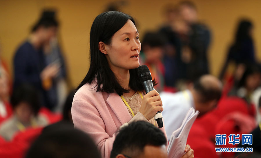 10月22日,十九大新聞中心在梅地亞中心二層新聞發(fā)布廳舉辦集體采訪活動,邀請教育領域代表談“教育綜合改革”。圖為中國婦女報記者提問。新華網(wǎng) 郝廣鵬攝