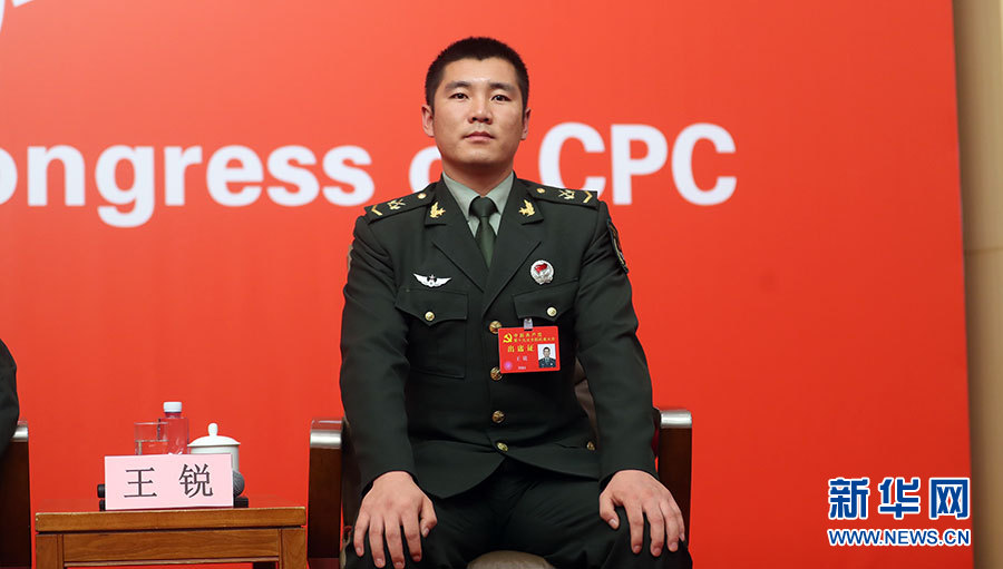 10月22日,十九大新聞中心在梅地亞中心二層新聞發(fā)布廳舉辦集體采訪活動(dòng),主題為“中國特色強(qiáng)軍之路邁出堅(jiān)定步伐”。圖為陸軍第74集團(tuán)軍某合成旅兩棲裝甲突擊車車長王銳。新華網(wǎng) 郝廣鵬攝