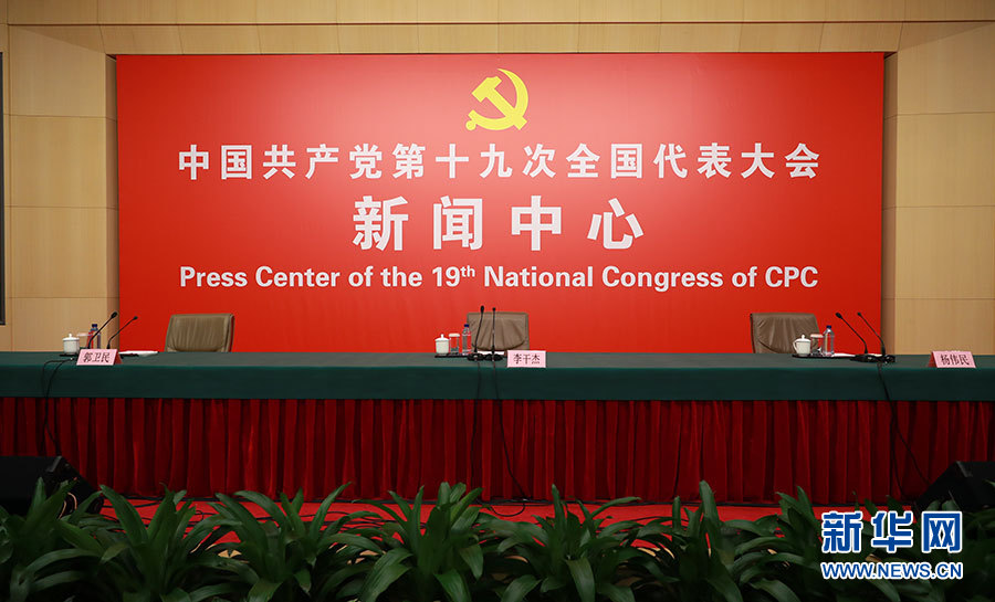 10月23日,十九大新聞中心舉辦記者招待會(huì),邀請(qǐng)中央財(cái)經(jīng)領(lǐng)導(dǎo)小組辦公室副主任楊偉民,環(huán)境保護(hù)部黨組書記、部長(zhǎng)李干杰介紹踐行綠色發(fā)展理念,建設(shè)美麗中國(guó)有關(guān)情況,并回答記者提問(wèn)。圖為記者招待會(huì)現(xiàn)場(chǎng)。新華網(wǎng) 郝廣鵬攝