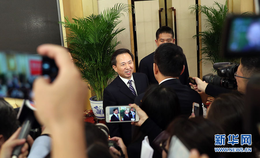 10月23日,十九大新聞中心舉辦記者招待會,邀請中央財(cái)經(jīng)領(lǐng)導(dǎo)小組辦公室副主任楊偉民,環(huán)境保護(hù)部黨組書記、部長李干杰介紹踐行綠色發(fā)展理念,建設(shè)美麗中國有關(guān)情況,并回答記者提問。圖為環(huán)境保護(hù)部黨組書記、部長李干杰接受記者采訪。新華網(wǎng) 郝廣鵬攝
