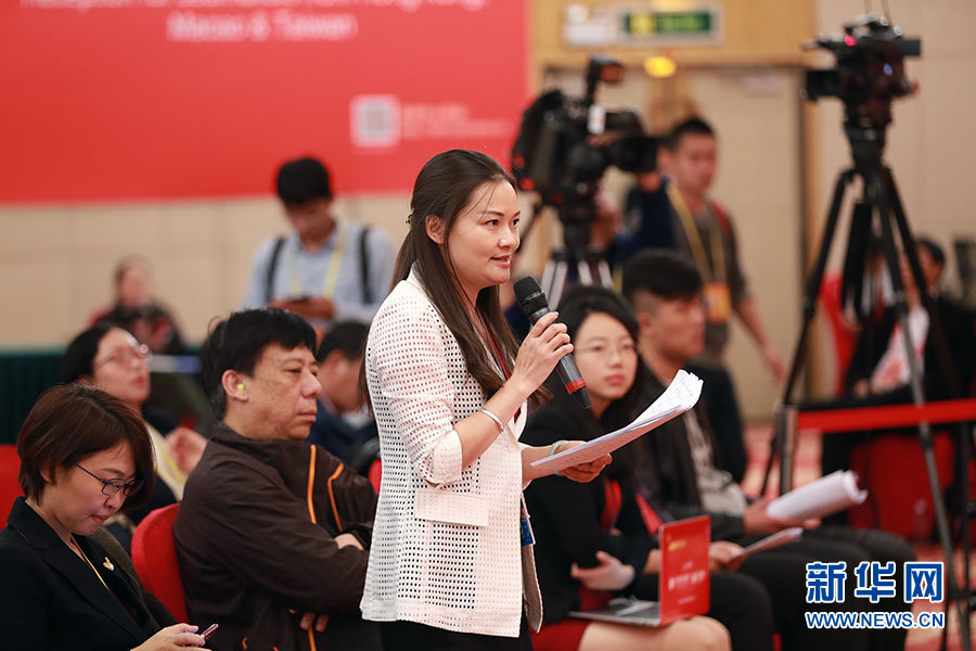 10月23日,十九大新聞中心舉辦集體采訪活動(dòng),主題為“打好生態(tài)環(huán)保攻堅(jiān)戰(zhàn)”。圖為中國(guó)冶金報(bào)記者提問。新華網(wǎng) 郝廣鵬攝