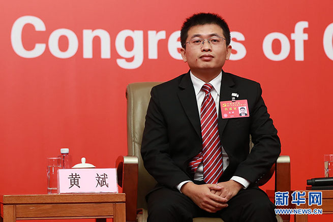 10月23日,十九大新聞中心舉辦集體采訪活動(dòng),主題為“打好生態(tài)環(huán)保攻堅(jiān)戰(zhàn)”。圖為湖南省張家界市環(huán)保局環(huán)境監(jiān)測(cè)中心站分析室主任黃斌。新華網(wǎng) 郝廣鵬攝