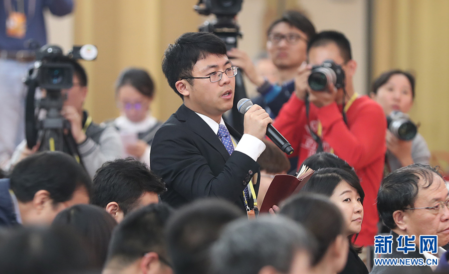 10月26日上午10:00,中國共產(chǎn)黨第十九次全國代表大會新聞發(fā)言人在梅地亞賓館二層新聞發(fā)布廳召開專題新聞發(fā)布會,請有關方面負責人解讀十九大報告,并回答記者關心的問題。圖為中國日報記者提問。新華網(wǎng) 王成云 攝