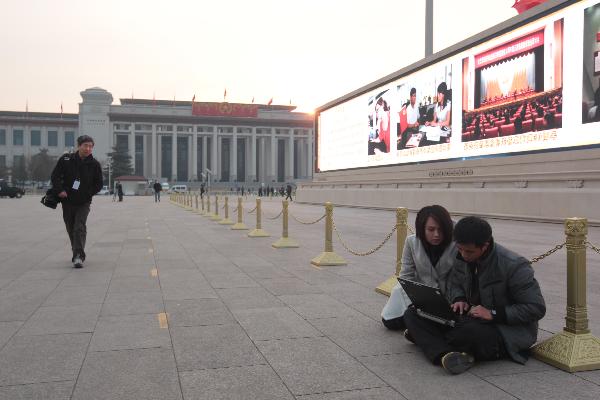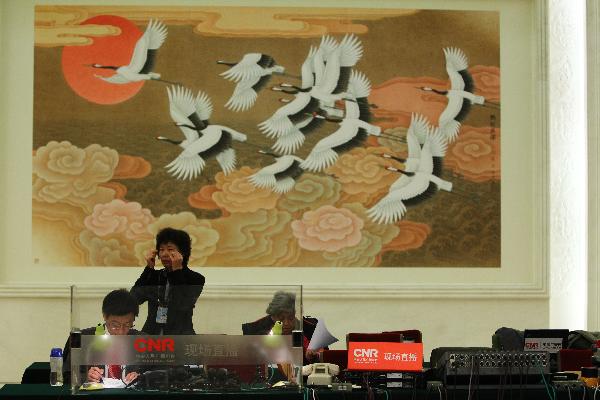 (兩會·人大開幕)記者搶時效