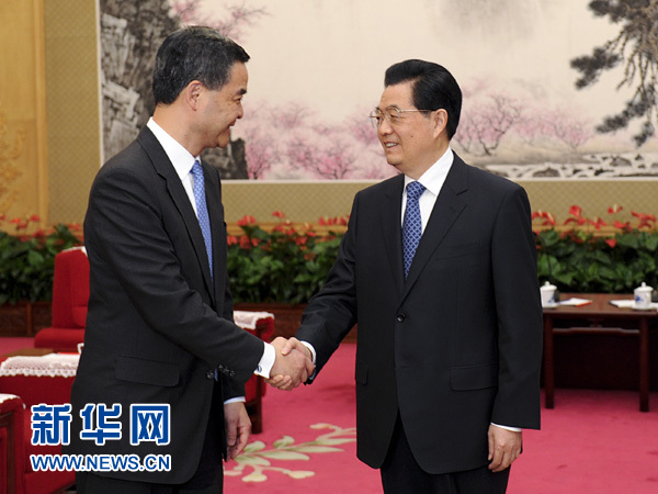 ?? 新華網(wǎng)快訊:國(guó)家主席胡錦濤21日下午在中南海會(huì)見(jiàn)了來(lái)京述職的香港特別行政區(qū)行政長(zhǎng)官梁振英。