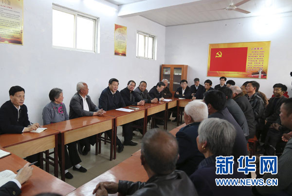 ??? 3月17日,習近平在東壩頭鄉(xiāng)張莊村村委會與干部群眾座談,聽取意見和建議。新華社記者丁林攝