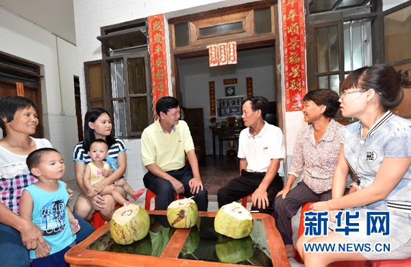 6月26日,樂(lè)東黎族自治縣縣委書(shū)記林北川(右四)夜訪九所鎮(zhèn)十所村,聽(tīng)取聯(lián)系點(diǎn)群眾的情況。 新華社記者 趙穎全 攝