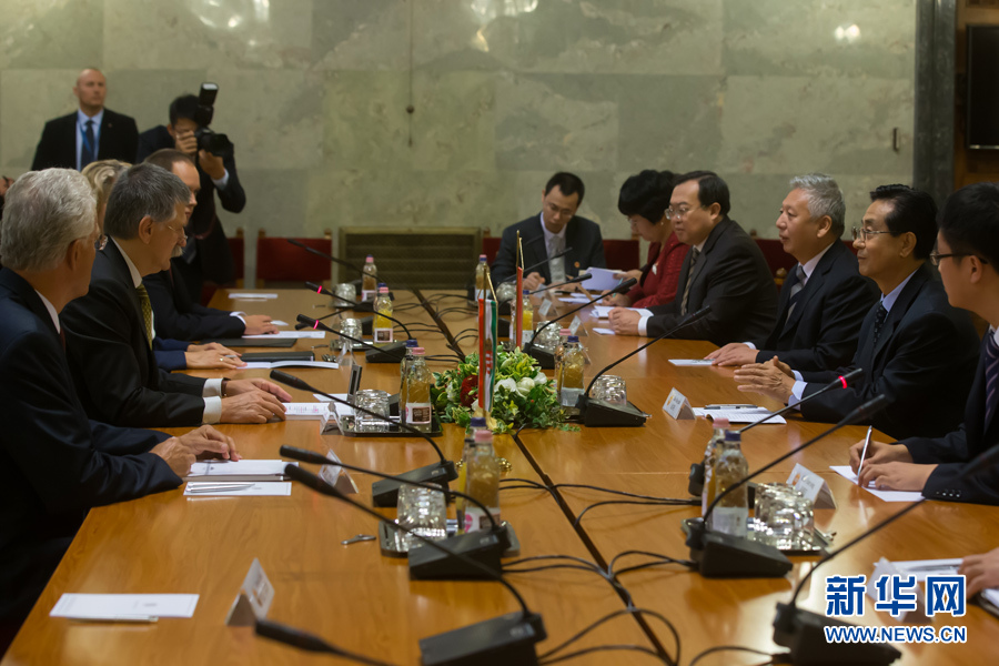 ??? 9月11日,中共中央書記處書記、中央紀(jì)委副書記趙洪祝(右二)在匈牙利首都布達(dá)佩斯會見匈牙利國會主席克韋爾(左二)。應(yīng)匈牙利執(zhí)政黨青民盟邀請,中共中央書記處書記、中央紀(jì)委副書記趙洪祝率中共代表團(tuán)于9月10日至11日訪問匈牙利。新華社發(fā)(弗爾季·奧蒂洛攝)