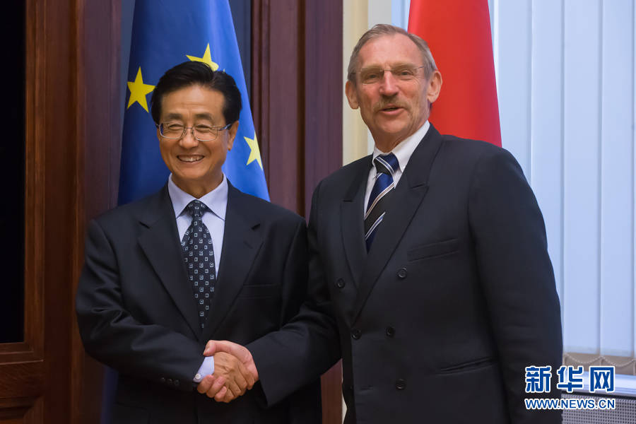 ??? 9月11日,中共中央書記處書記、中央紀(jì)委副書記趙洪祝(左)在匈牙利首都布達(dá)佩斯會見匈牙利內(nèi)務(wù)部長平特爾。應(yīng)匈牙利執(zhí)政黨青民盟邀請,中共中央書記處書記、中央紀(jì)委副書記趙洪祝率中共代表團(tuán)于9月10日至11日訪問匈牙利。新華社發(fā)(弗爾季·奧蒂洛攝)