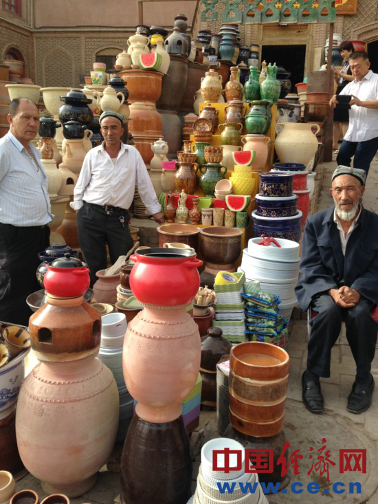 現(xiàn)年50歲的買買提?依明是一個土陶巴扎經(jīng)營者,說起這座老城的變化,他感慨萬千:“你們猜猜這個房子有多少年了”,記者們表示不知道,“300年了,我們家在這5代人哩”,買買提?依明說,原來的房子很小,巷子也很窄,家里開了個旅舍,人多的時候還要打地鋪,生意也不好。后來房屋改造,在自家原址上蓋了新房,全家人高興得不得了,自己花了15萬裝修,整修一新的房屋讓旅舍又紅紅火火的開了起來,大兒子大學畢業(yè)后已經(jīng)回來幫忙,小兒子還在重慶讀大學。依明說,當初改造的時候政府讓我們選擇,可以搬出去住樓房,也可以留在這,街坊鄰居們很少有搬走的,現(xiàn)在我周圍還是那些老朋友。說起自己覺得裝修貴不貴,依明說:“政府花了那么多錢給我們蓋房子,我們自己花一點也是應該的,感謝政府給我們這么好的生活?!?/p>