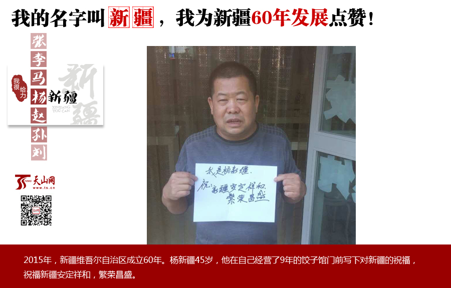 楊新疆:和新疆同名,我很榮幸。我祝新疆人越過越好,生活更上一層樓。