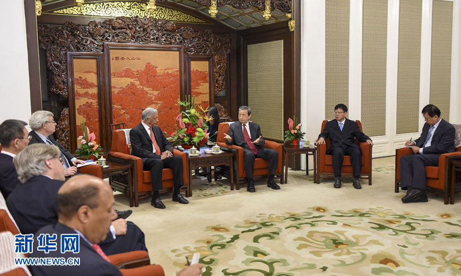 ?? 9月22日,中國(guó)國(guó)務(wù)院副總理馬凱在北京中南海紫光閣會(huì)見(jiàn)巴基斯坦前總理肖卡特·阿齊茲等參加中投公司國(guó)際咨詢(xún)委員會(huì)會(huì)議的委員。 新華社記者謝環(huán)馳 攝