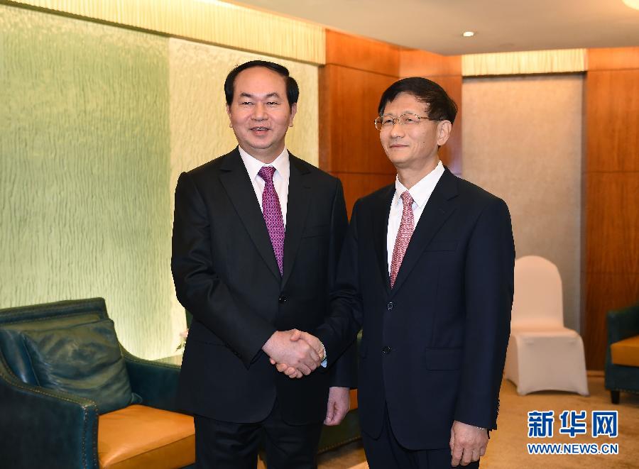 ??? 10月23日,中共中央政治局委員、中央政法委書記孟建柱在北京會(huì)見出席“安全促發(fā)展”中國東盟執(zhí)法安全合作部長級會(huì)議的越共中央政治局委員、公安部部長陳大光。新華社記者張領(lǐng)攝