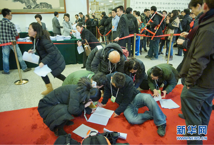 ??? 3月5日,第十二屆全國人民代表大會第三次會議在北京人民大會堂開幕。這是記者在人民大會堂內(nèi)領到政府工作報告后抓緊閱讀。