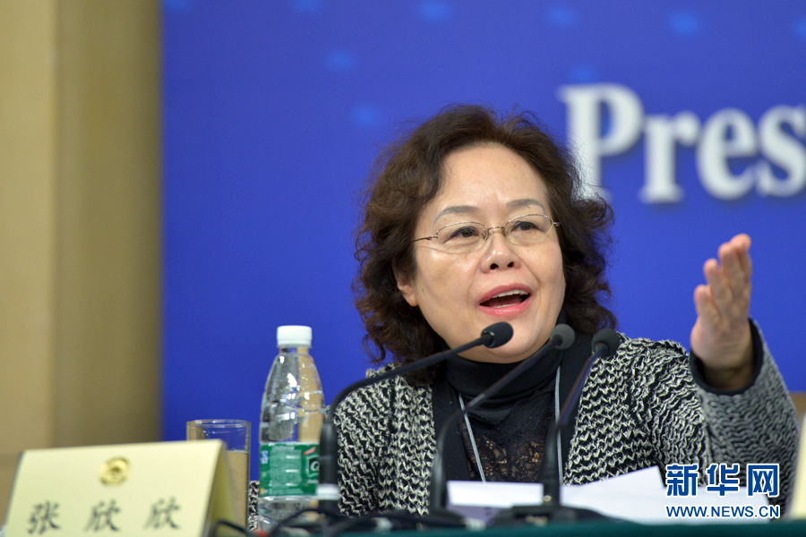 ??? 全國(guó)政協(xié)十二屆三次會(huì)議舉行記者會(huì),邀請(qǐng)全國(guó)政協(xié)常委朱維群、黃潔夫和全國(guó)政協(xié)委員胡曉義、李彥宏、俞敏洪等談促進(jìn)民生改善與社會(huì)和諧穩(wěn)定,并回答記者提問。圖為記者會(huì)主持人張欣欣。新華網(wǎng)/中國(guó)政府網(wǎng) 郭小天 攝
