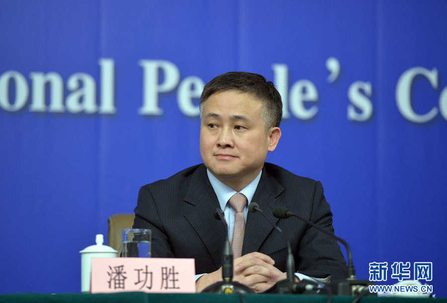 ????十二屆全國(guó)人大三次會(huì)議新聞中心于3月12日在梅地亞中心多功能廳舉行記者會(huì),邀請(qǐng)中國(guó)人民銀行行長(zhǎng)周小川,中國(guó)人民銀行副行長(zhǎng)、國(guó)家外匯管理局局長(zhǎng)易綱,中國(guó)人民銀行副行長(zhǎng)潘功勝,絲路基金有限責(zé)任公司董事長(zhǎng)金琦就金融改革與發(fā)展回答中外記者提問。圖為中國(guó)人民銀行副行長(zhǎng)潘功勝回答記者提問。新華網(wǎng)/中國(guó)政府網(wǎng) 郭小天 攝