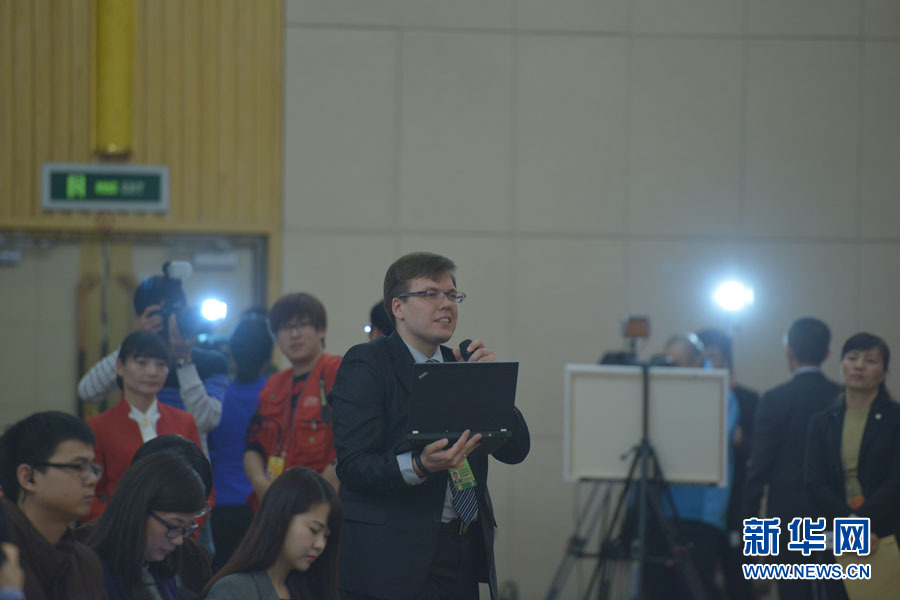 ????十二屆全國人大三次會(huì)議新聞中心于3月12日在梅地亞中心多功能廳舉行記者會(huì),邀請(qǐng)中國人民銀行行長周小川,中國人民銀行副行長、國家外匯管理局局長易綱,中國人民銀行副行長潘功勝,絲路基金有限責(zé)任公司董事長金琦就金融改革與發(fā)展回答中外記者提問。圖為塔斯社記者提問。新華網(wǎng)/中國政府網(wǎng) 郭小天攝
