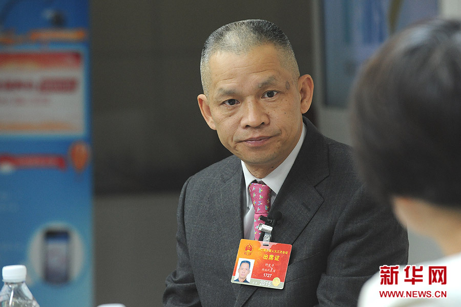 2015年3月13日,全國人大代表、湖南科力遠新能源股份有限公司董事長鐘發(fā)平做客新華會客廳。新華網(wǎng)?賈振 攝