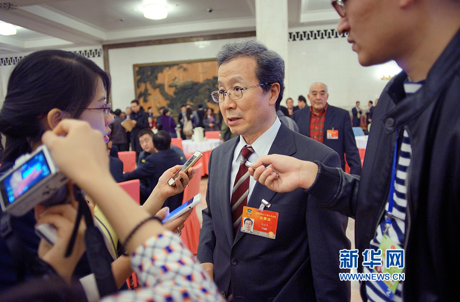 ????3月13日,全國政協(xié)十二屆三次會(huì)議在北京人民大會(huì)堂舉行閉幕會(huì)。圖為全國政協(xié)委員程永華接受記者采訪。新華網(wǎng)/中國政府網(wǎng)?翟子赫 攝