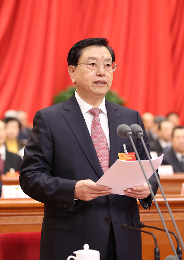 3月15日,第十二屆全國(guó)人民代表大會(huì)第三次會(huì)議在北京人民大會(huì)堂舉行閉幕會(huì)。張德江主持閉幕會(huì)并講話。 新華社記者 蘭紅光 攝