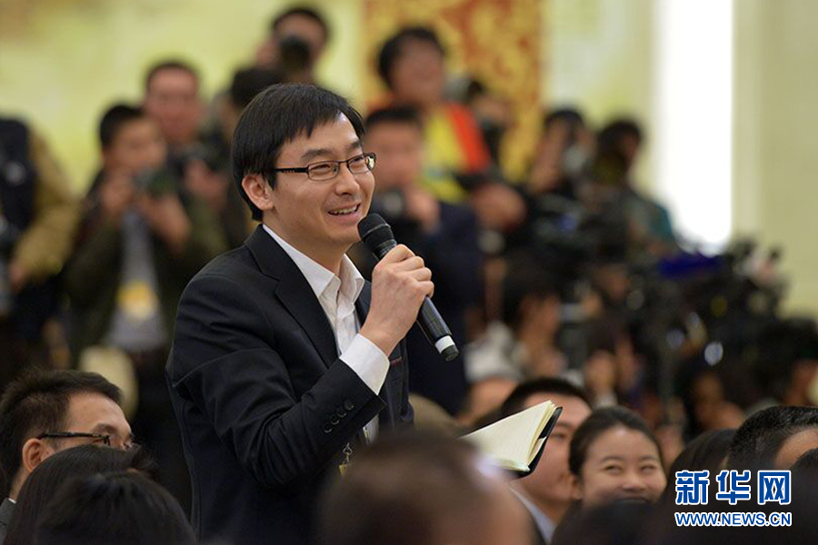 ????3月15日,國務(wù)院總理李克強(qiáng)在人民大會堂三樓金色大廳會見采訪十二屆全國人大三次會議的中外記者并回答記者提出的問題。圖為人民日報記者提問。新華網(wǎng)/中國政府網(wǎng)?郭小天 攝
